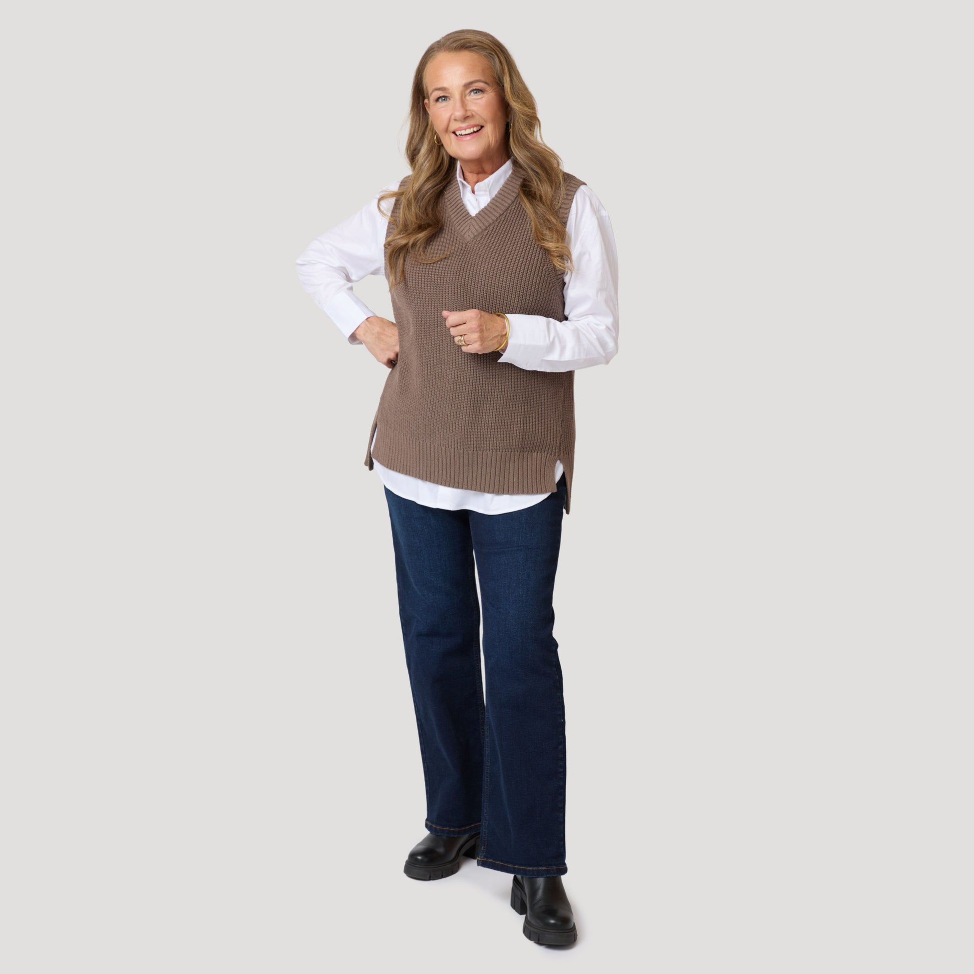 Vit skjorta under brun väst