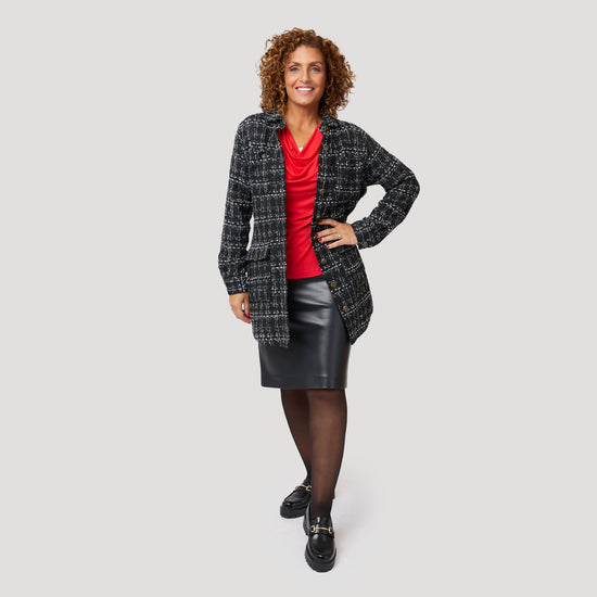 I garderoben återfinns plagg som är annorlunda och sticker ut från mängden. Man väljer material som har tyngd och struktur i sig framför tunna böljande tyger. Lack, päls, blankt siden och gärna tyger med struktur.