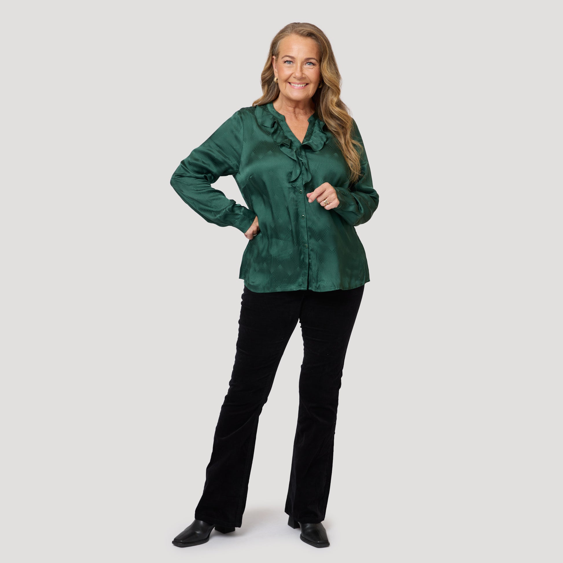 Blus i grönt till sammetsbyxa