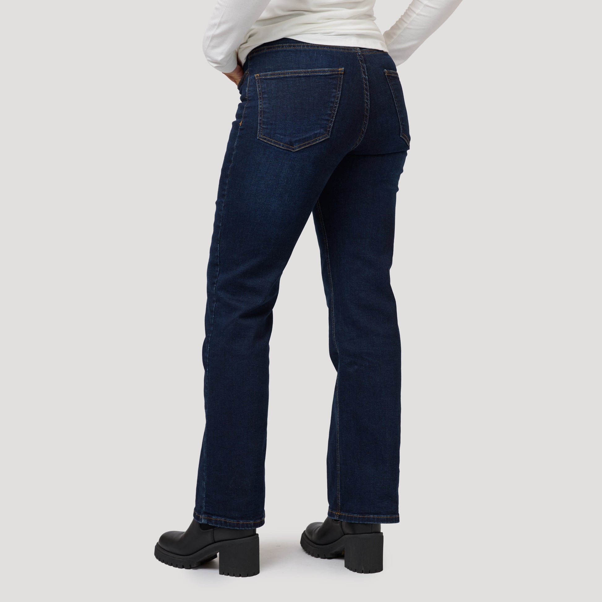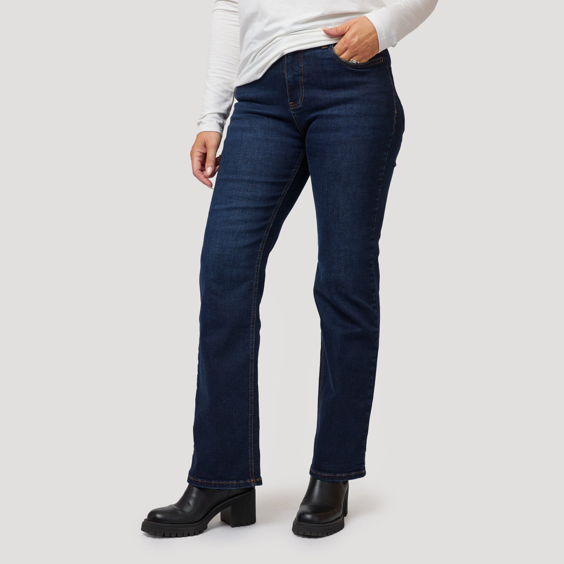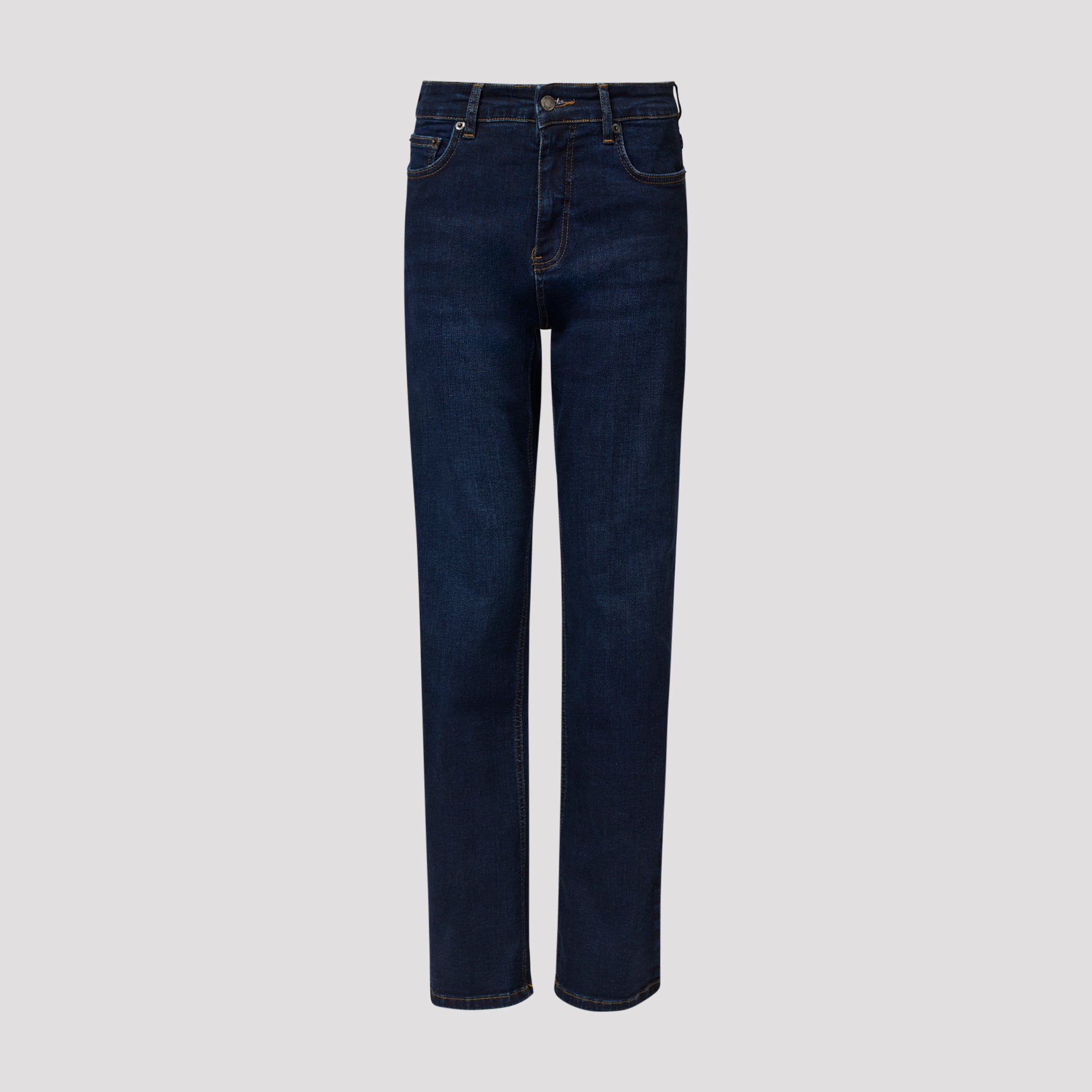 Mörkblå jeans i klassisk rak modell med hög midja. Byxan är i bomull med en liten andel elastan för en skön känsla. Jeans med fickor fram och bak och dragkedja i gylfen. Obs! Denna byxa kan torr och våtfälla. Vår modell Marianne är 170 cm och har storlek 38 på sig.