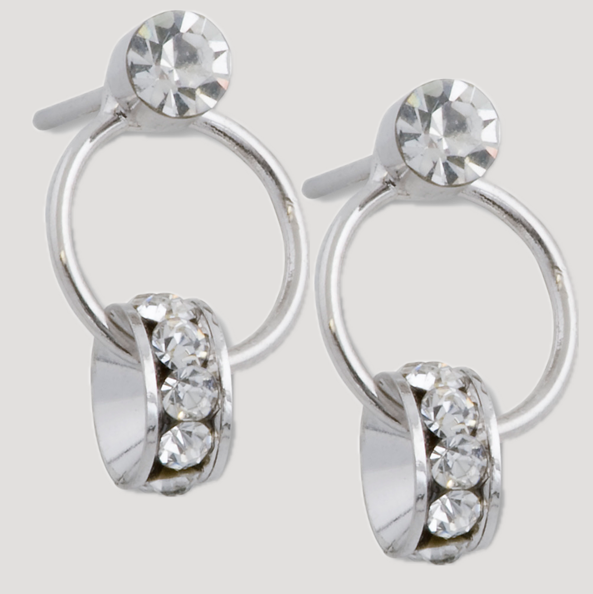 Ett smäckert och elegant örhänge som passar både till vardag och fest. Silverpläterat örhänge med klara glaskristaller. Örhänget är 2 cm långt. Nickelsäkert.