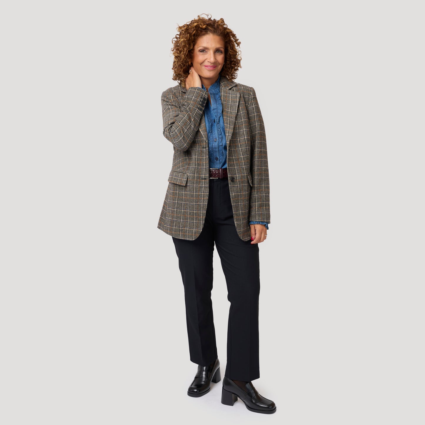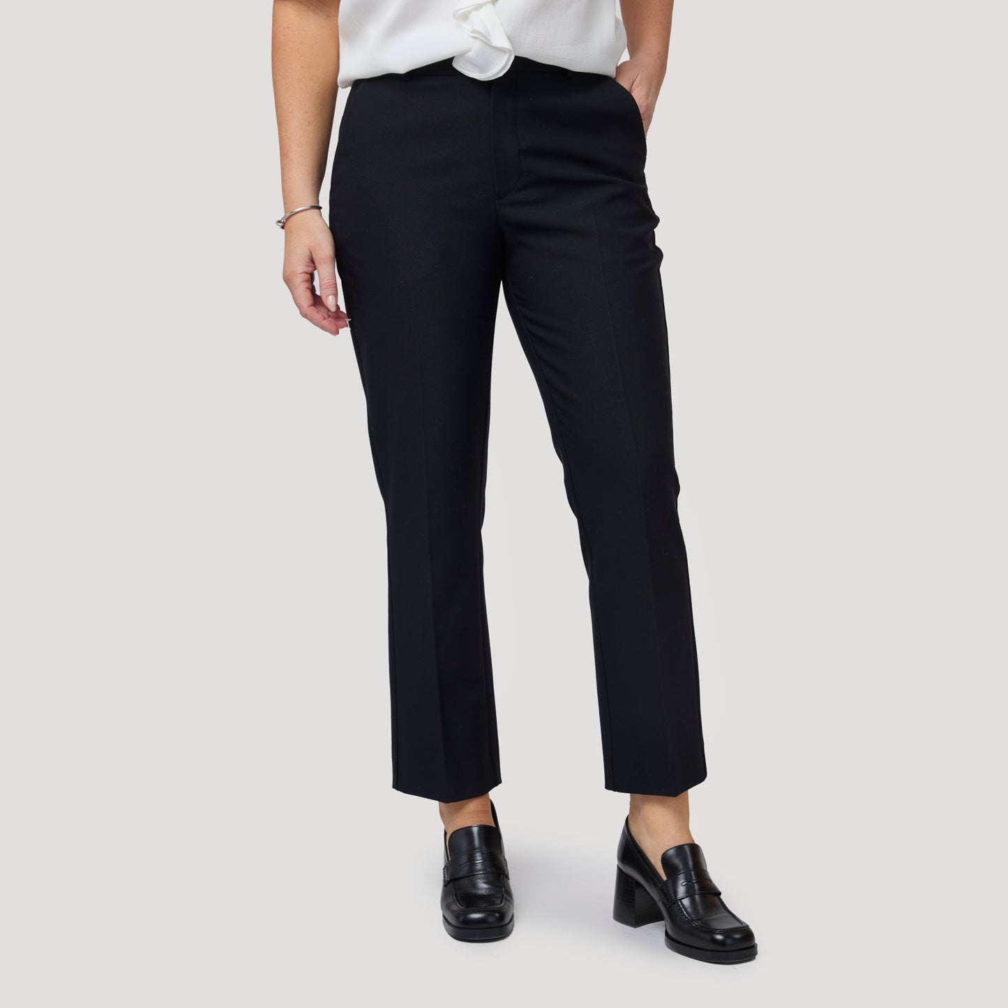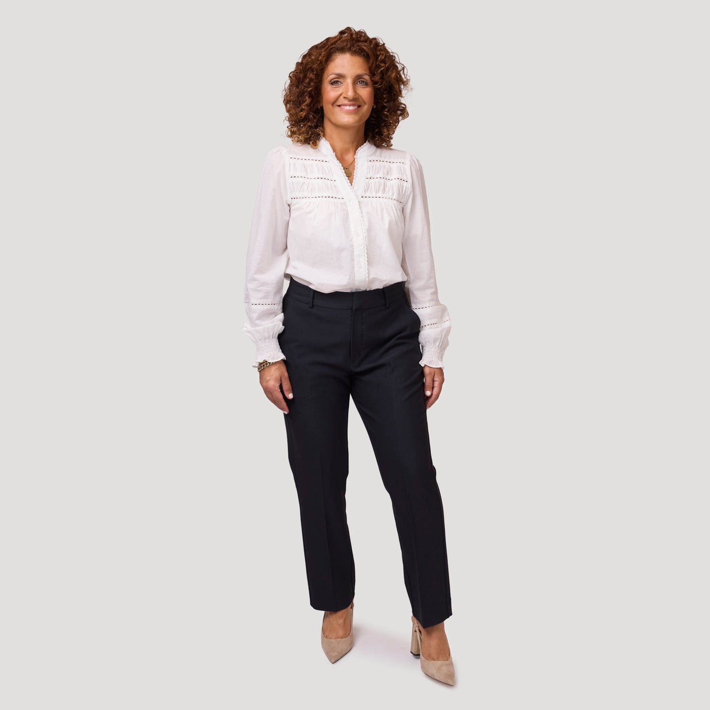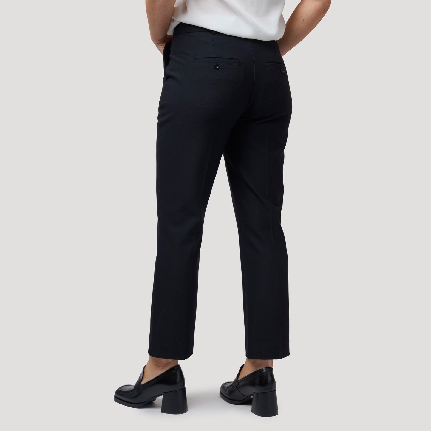 Mörkblå byxa i en skön, mjuk kvalitet. Den snygga stretchbyxan i navy har även resår i linningen baktill för bra passform vilket gör den extra skön. En klassisk modell med sidfickor, stolpfickor bak med knapp och pressveck fram och bak. Stängs med gylf med dragkedja, hyska och hake i linningen. Tyget är samma kvalitet som i vår tidigare modell Anita byxa. Vår modell Anne är 174 cm och har storlek 40 på sig på bild 1. Vår modell Yvonne på bild 2 & 3 är 170 cm och har storlek 42 på sig. Byxa från Rosebud.